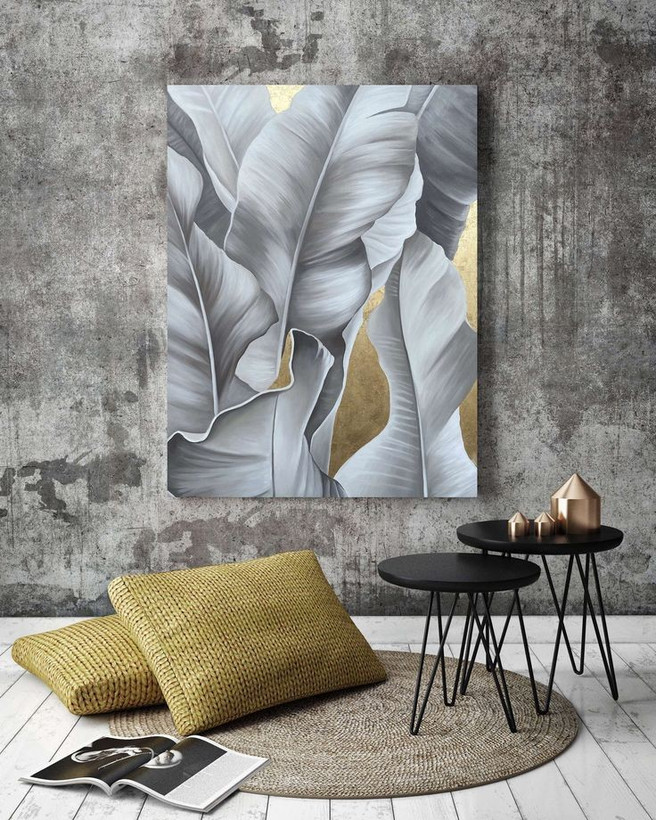 تابلو دکوراتیو رنگ روغن کار دست طرح برگ موز ۱۰۰×۷۰