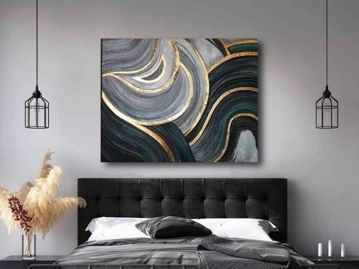 تابلو مدرن نقش برجسته کار شده با ورق طلا ۱۲۰*۹۰ کد ۷۳۴