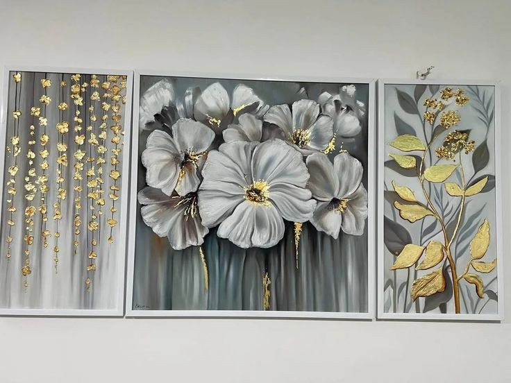 تابلو دکوراتیو سه تیکه نقش برجسته گل و ریسه ۱۸۰*۸۰ کد ۰۹۹