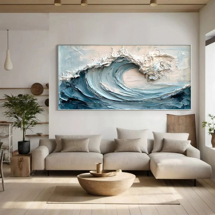 تابلو دکوراتیو نقش برجسته موج دریا هنر دست ۱۴۰*۷۰ کد ۹۲۴