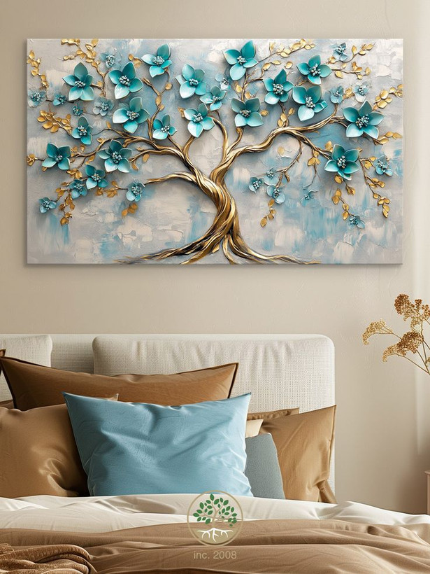 تابلو دکوراتیو نقش برجسته درخت شکوفه فیروزه ۱۳۰*۸۰ کد ۹۶۰