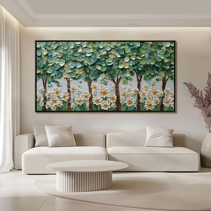 تابلو دکوراتیو نقش برجسته دشت بابونه ۱۴۰*۷۰ هنر دست کد ۸۶۶