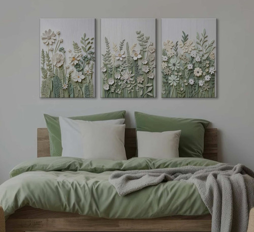 تابلو دکوراتیو سه تیکه نقش برجسته گل و ریسه ۱۸۰*۸۰ کد ۰۹۹ ارسال رایگان💥