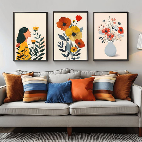 تابلو رنگ روغن سه تیکه مینیمال هنر دست کد ۳۴۴۵ ارسال رایگان💥