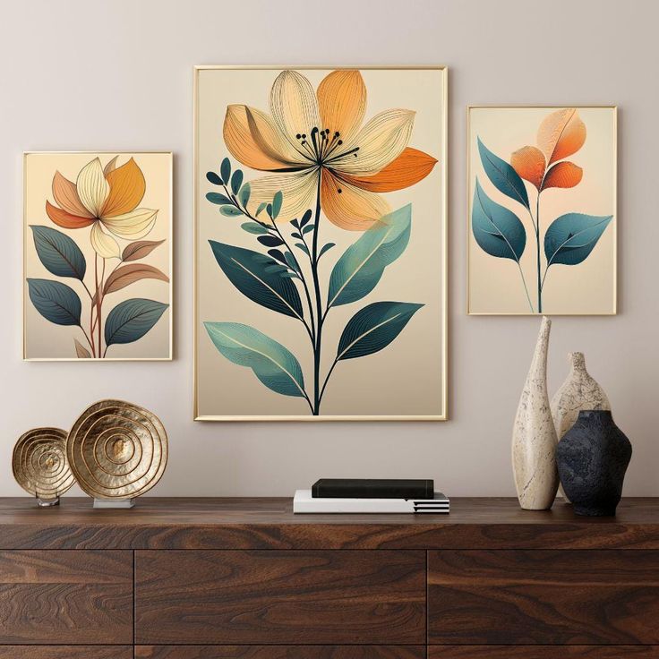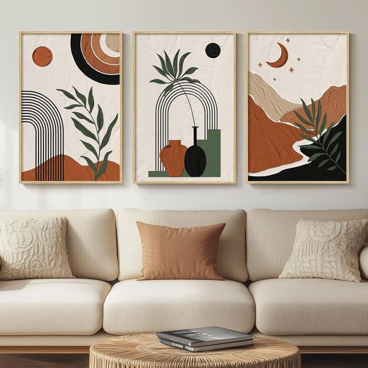 تابلو رنگ روغن سه تیکه مینیمال هنر دست کد ۳۴۴۵ ارسال رایگان💥