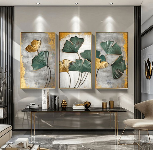 تابلو دکوراتیو ۳ تیکه نقش برجسته برگ جینکو ۱۸۰*۱۰۰ کد ۱۰۱۱