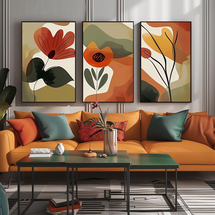 تابلو رنگ روغن سه تیکه مینیمال هنر دست کد ۳۴۴۵ ارسال رایگان💥